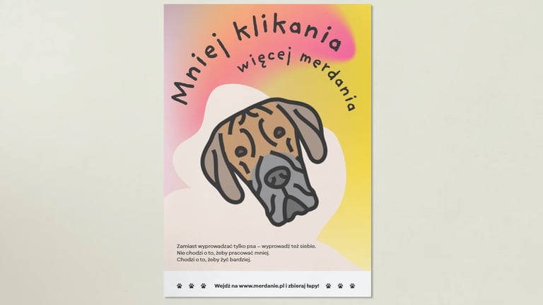 Projekt materiałów graficznych dla inicjatywy społecznej zachęcającej do spędzania czasu ze swoimi czworonożnymi przyjaciółmi.